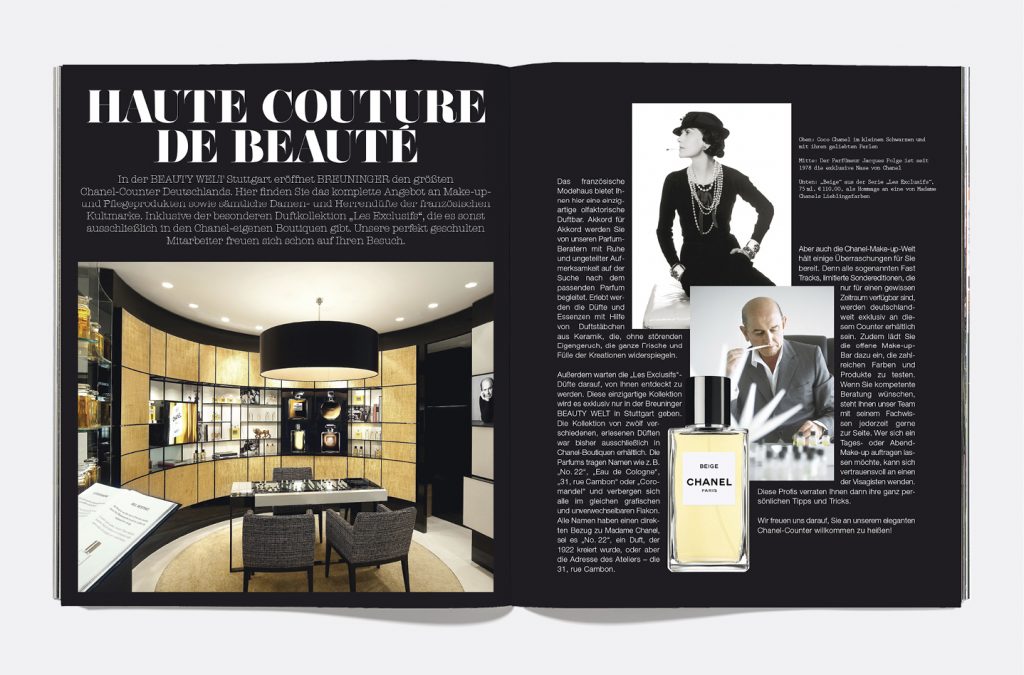 Presentation of the new beauty world by BREUNINGER. Promotion of the opening of the newly designed Beauty Department in Stuttgart, under the motto “Love yourself”. Development of the creative concept, editing, photo shooting, illustration, layout and execution.