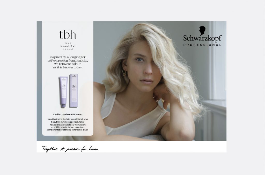 Inspired by a new generation of clients with a deep longing for self-expression and a demand for authenticity within beauty, Schwarzkopf Professional reinvents colour with tbh – true beautiful honest. The first permanent colouration that creates authentic colour results.