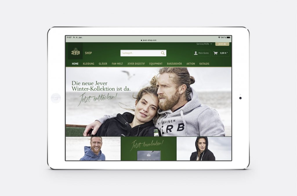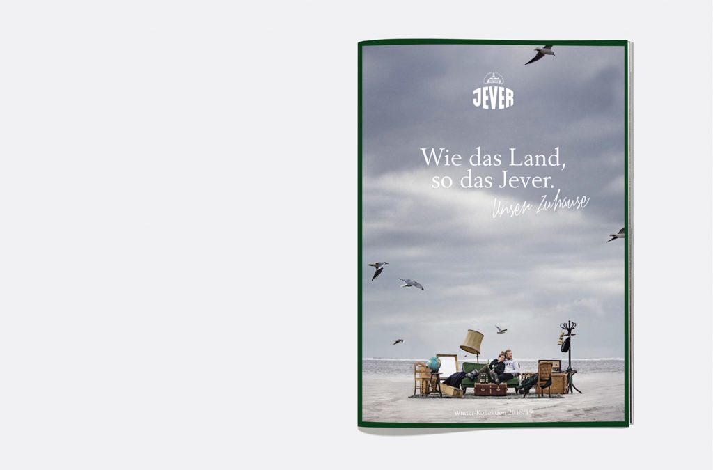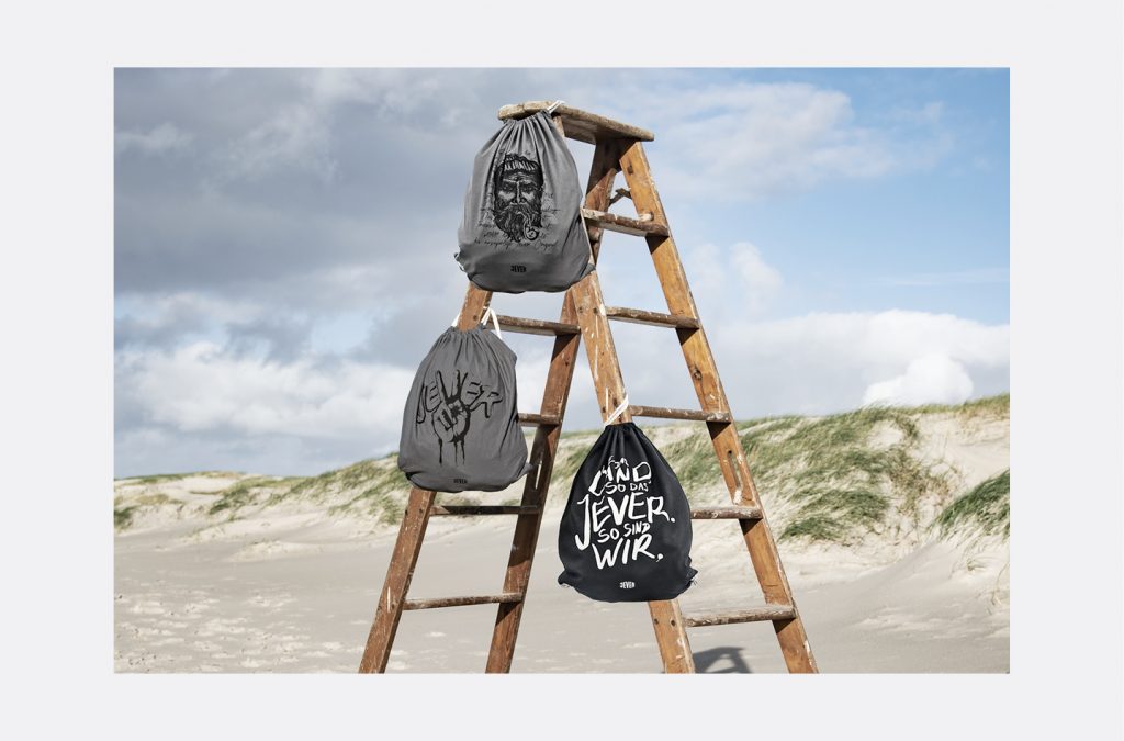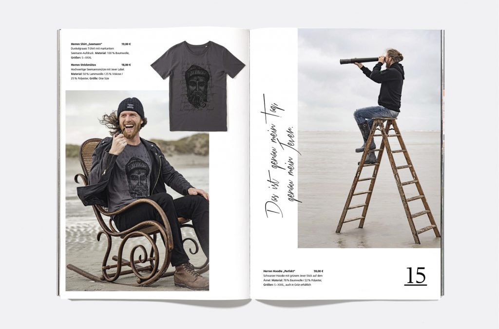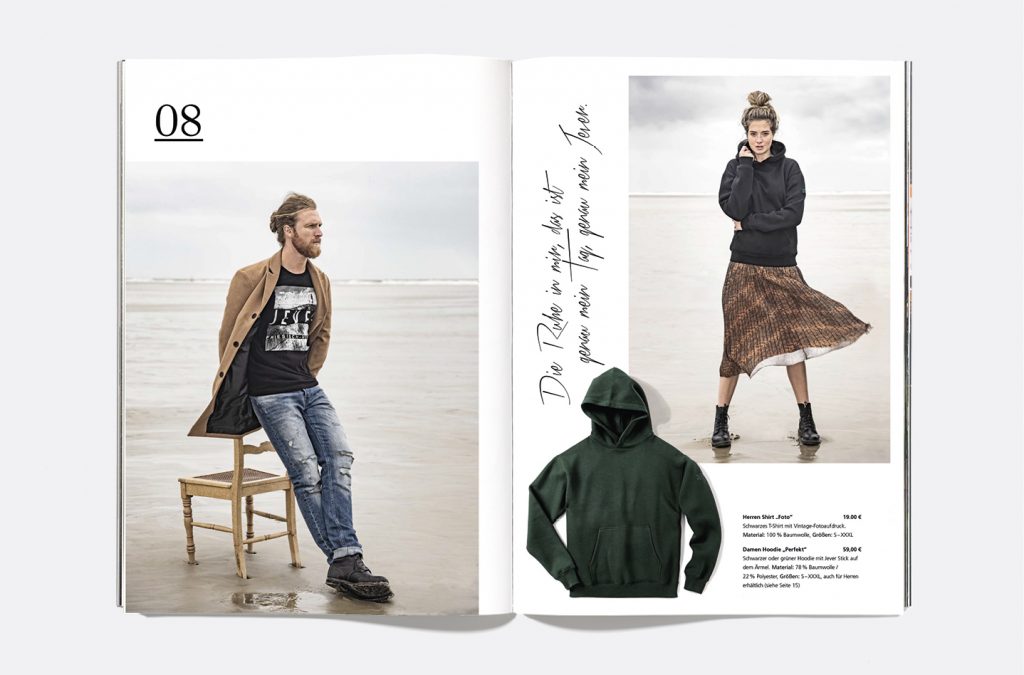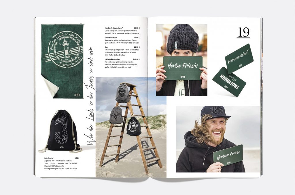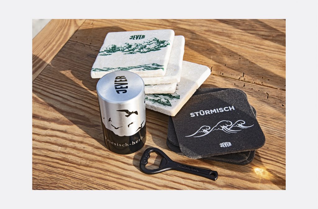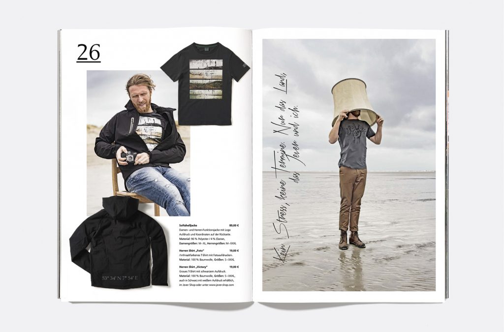 The task was to transform a bottle of beer into a lifestyle fashion brand. The base is the common denominator: the city Jever as the origin, the surrounding landscape and the people who live there
