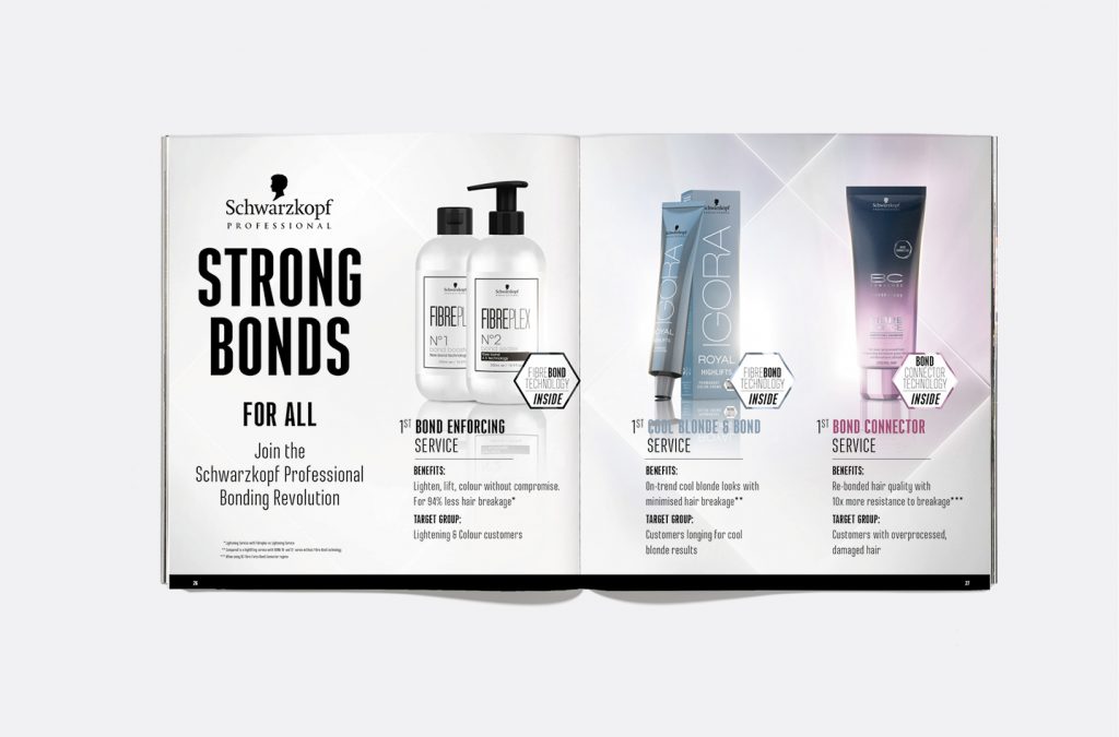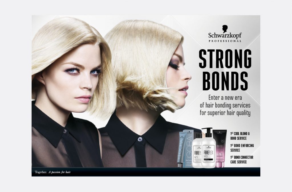 Launch of STRONG BONDS, which technology protects and builds new hair bonds especially when lightening and on damaged hair. It enters a new era of hair bonding services for superior hair quality. Development of two trade advertisements and salesfolder.