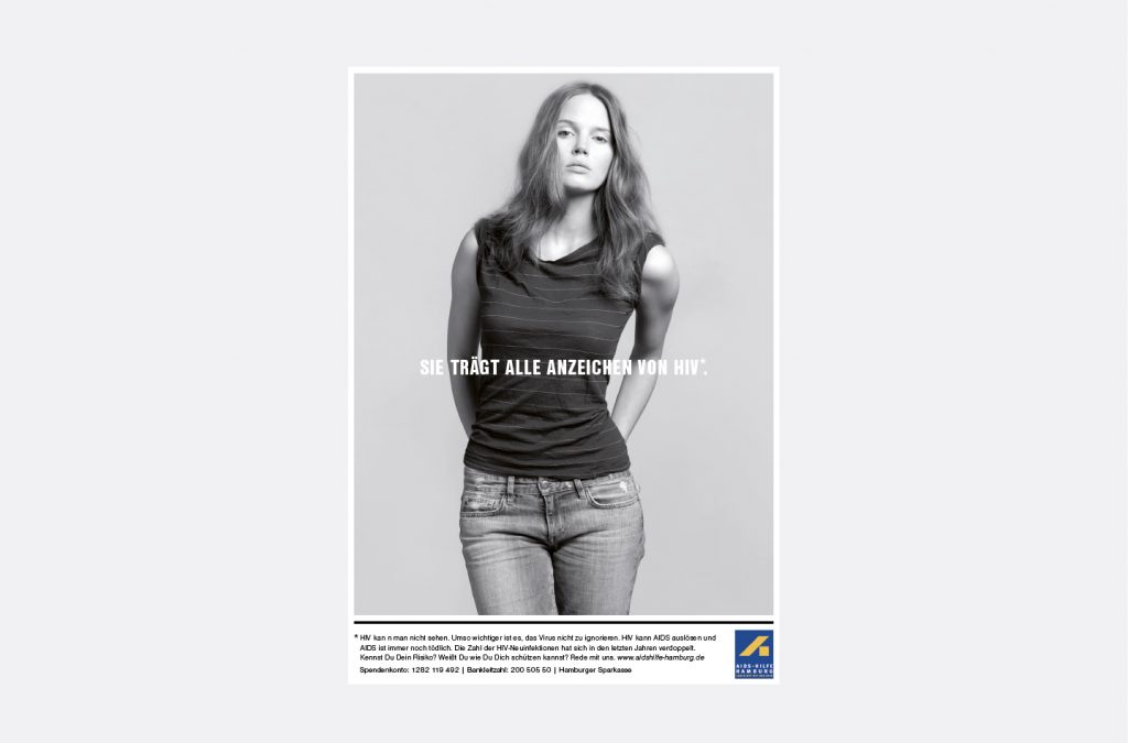 Conception of an educational campaign that communicates the hidden dangers of HIV and aims to lower the number of new infections. Concept: HIV is invisible. Development of poster, advertisements and videoclip.