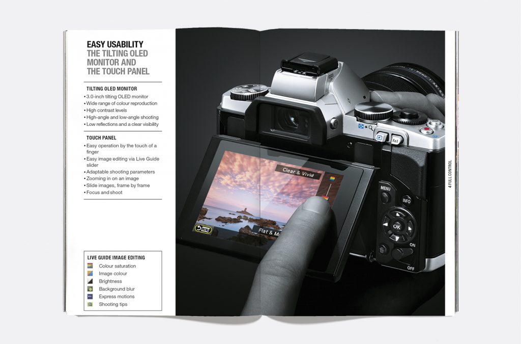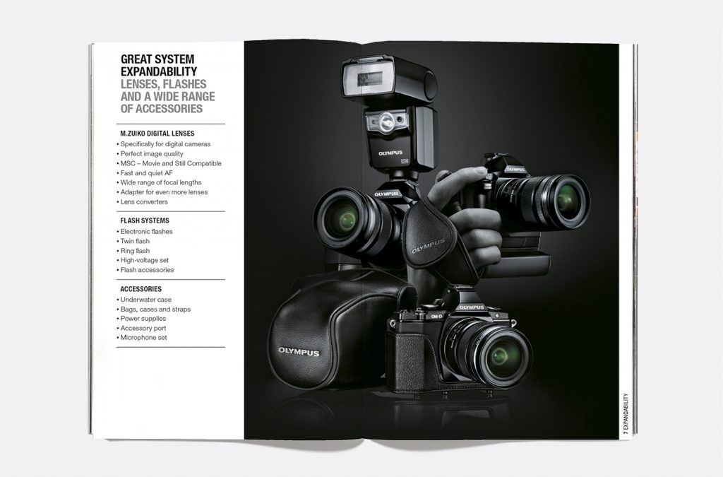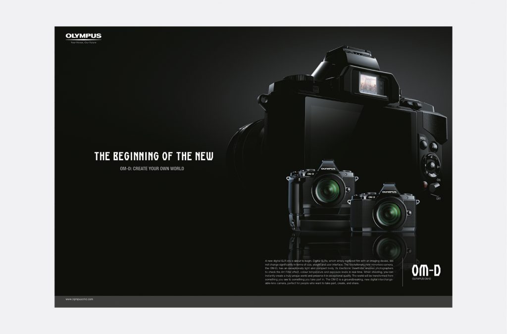 Campaign for the global market launch of the OM series, now available as a digital system camera. High-tech performance packed in retro design – the beginning of a new era. Development and execution of the creative concept „Reduced to perfection“ for OOH, brochures and sales folders.