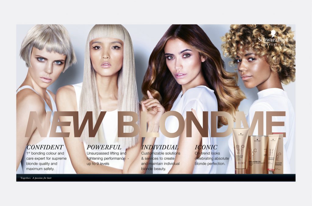 Relaunch of BLONDME that delievers the perfect blond for every woman with high demands. Blond is not a hair colour – but an attitude. Development of the trade advertisements including line extensions, sales folder and POS materials.